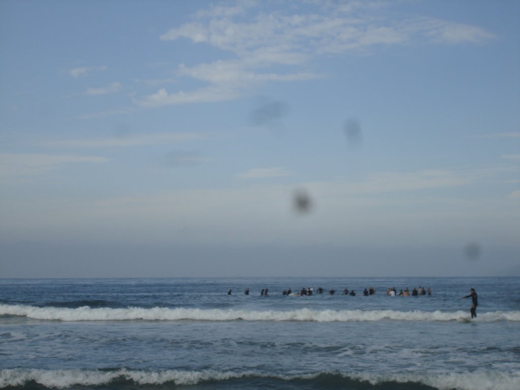 Jeff's Paddle Out at Santa Monica, June 27, 2015. Twenty-five in the water and a hundred on the beach! For more pictures of Jeff's Memorial Wake and Paddle out,